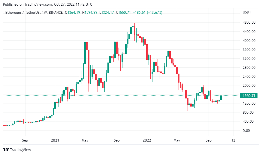 Ethereum geçen haftadan bu yana yaklaşık %20 yükselerek şu anda 1.500 doların üzerinde işlem görüyor. Mike McGlone, mevcut rallinin ortasında attığı bir tweet’te şunları söyledi: