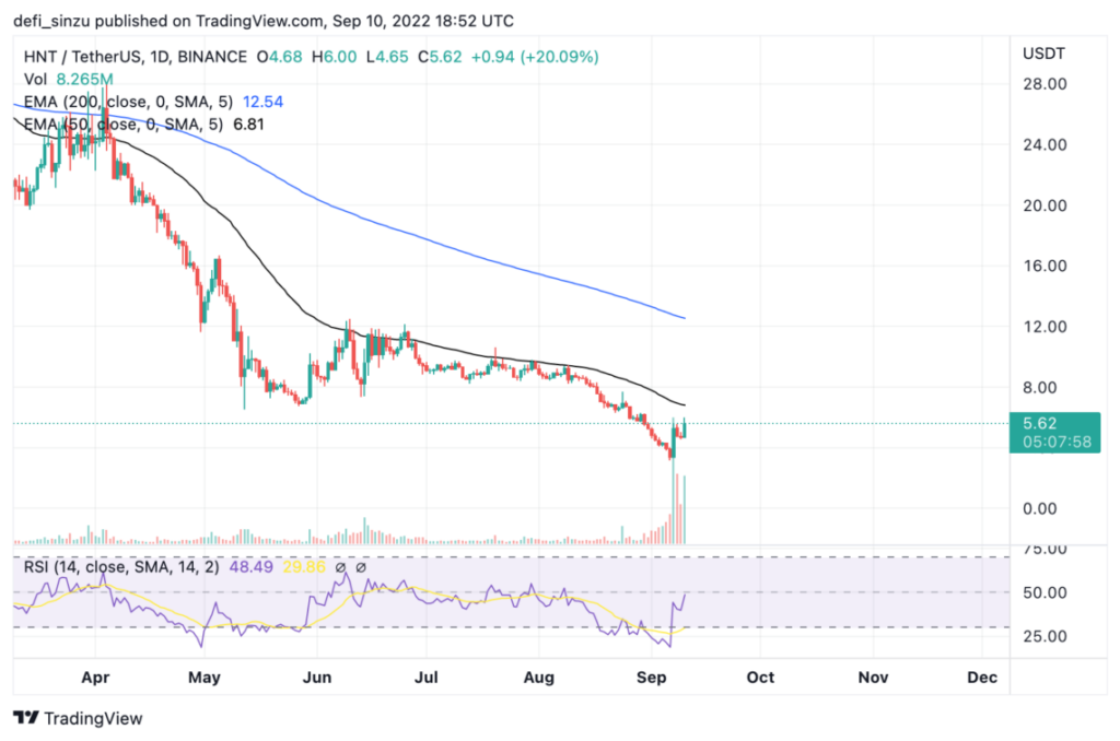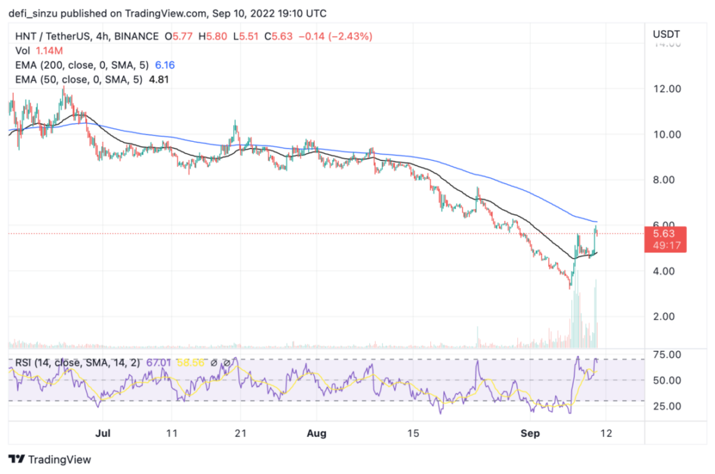 Helium (HNT), son aylarda güçlü yükseliş koşusuna rağmen, tüm zamanların en yüksek seviyesi olan 50 dolardan 5 dolara düştü. HNT, güçlü bir yükseliş hissi ile fiyatın 50 dolara yükseldiğini gören son hareketini tekrarlamakta zorlandı. 50 dolardan 4 dolara düştükten sonra, HNT ayakta kalmak için mücadele etti. HNT, çoğu traderın alım emri vermesi için iyi bir alan gibi görünen 4 dolarda güçlü bir destek oluşturdu.