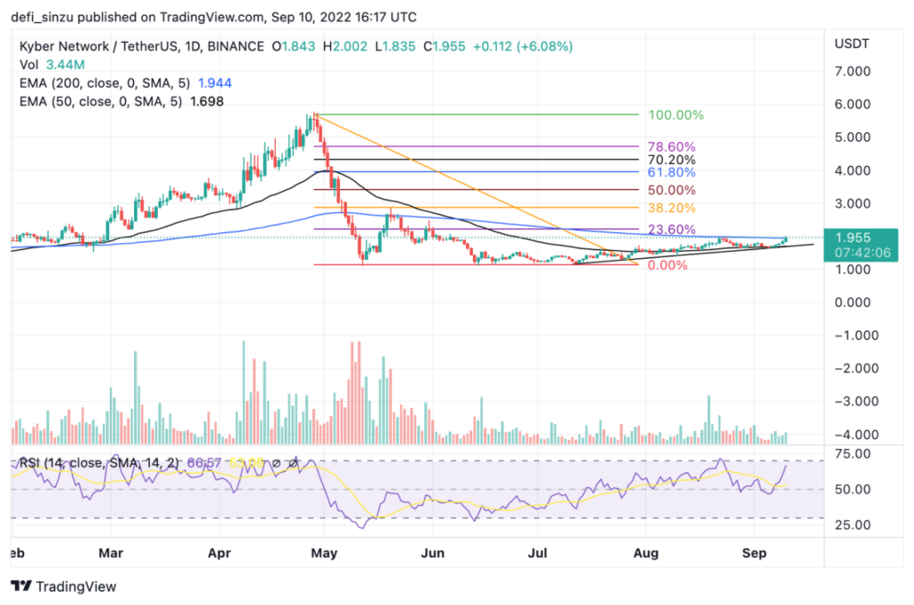 KNC’nin fiyatı, yeni bir haftalık mum öncesinde haftayı daha yükseliş notuyla bitirmeye hazır olabilir. Böyle olumlu bir duyguyla, analiste göre, KNC’nin 3 dolara ulaştığını görebiliriz. KNC’nin fiyatı, fiyatta daha yüksek bir eğilim gösteremediği için 1,95 dolarda dirençle karşı karşıya. KNC bu bölgeyi değiştirirse, fiyatın 2.5-3 dolara ve hatta daha üstüne yükseldiğini görebiliriz. Analist, KNC için 2.5-3 doları direnç, 1 doları ise destek seviyesi olarak işaretliyor.