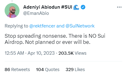 “Sui Airdrop YOK. Planlanmadı ya da asla olmayacak.”