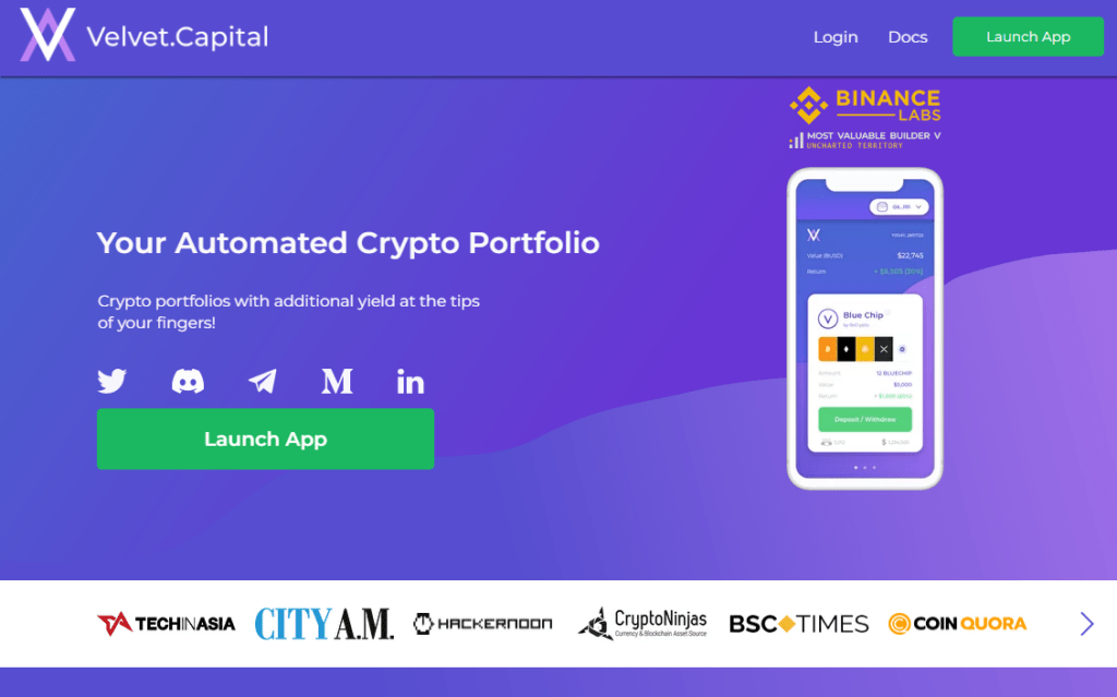 Velvet Capital, kullanıcıların tokenize portföylere otomatik olarak yatırım yapmasına yardımcı olur. Böylece DeFi’yi daha şık ve daha güvenli hale getiriyor. Ayrıca kullanıcıların ek getiri elde etmesine olanak tanır.
