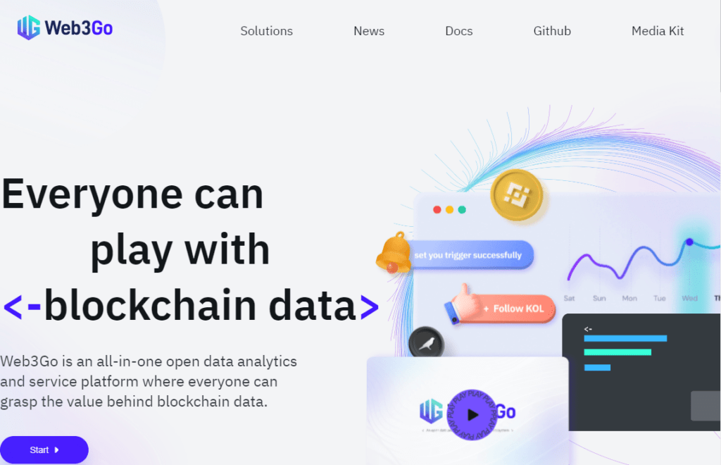 Web3Go, zincirleme olaylar için anında iletme bildirimlerini destekleyen multi-chain bir açık veri analizi platformudur. Özellikle, Blockchain verilerini indeksler ve bunları biçimli bir şekilde sunar. Böylece kullanıcılar verileri görselleştirmelere çevirebilirler.