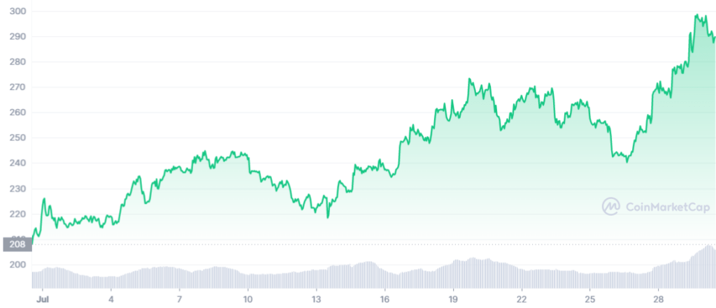 CoinMarketCap topluluğu altcoin BNB için fiyat tahmini yaptı. Buna göre CMC topluluğu Binance Coin için Ağustos ayında yükseliş bekliyor. 31 Ağustos 2022’ye kadar BNB fiyatının ortalama 360,91 dolara ulaşacağını tahmin ediyorlar. Bahsi geçen tahmin, 1.888 topluluk üyesinin oylarının sonucunda ortaya çıktı. Bu, BNB’nin mevcut 288 dolarlık fiyatından 76,61 dolar, yani %26,95’lik bir artışı temsil ediyor. Aynı topluluk, altcoin için Eylül sonu fiyat hedefi de belirledi. Buna göre CMC topluluğu, BNB’nin Eylül ayında da artmasını bekliyor. Hatta Ağustos ayındaki yükseliş beklentilerinden daha iyimser bir bakışa sahipler. BNB’nin 30 Eylül’deki ortalama fiyatının 384,06 dolar olacağını tahmin ediyorlar. Bu kripto paranın mevcut fiyatına göre %35.09 artış anlamına geliyor. Yani tahmine göre BNB 99.77 dolar kazanç elde edecek.