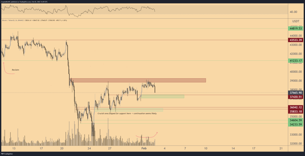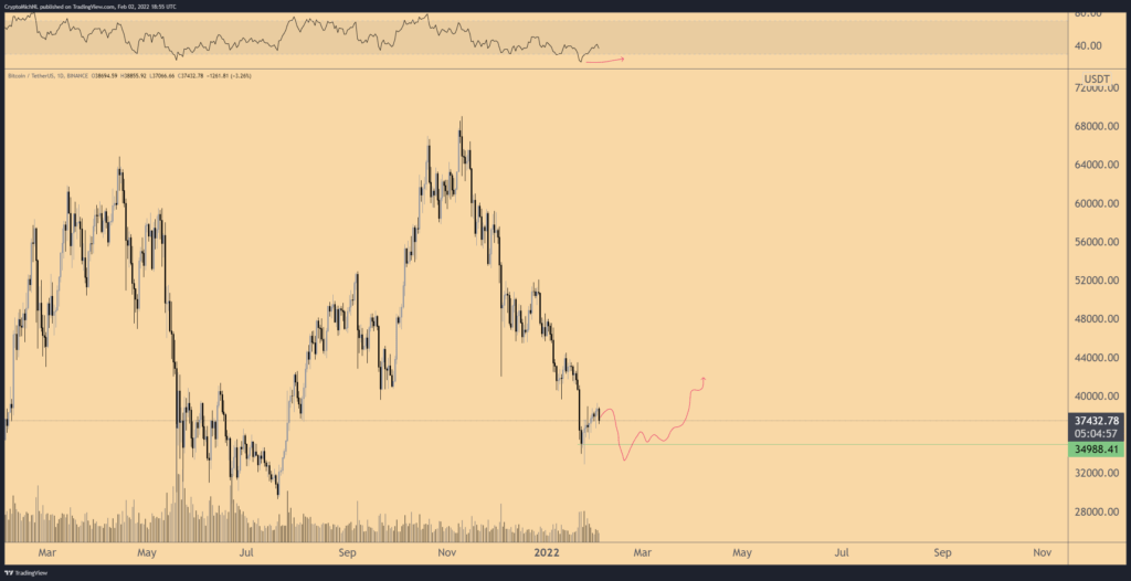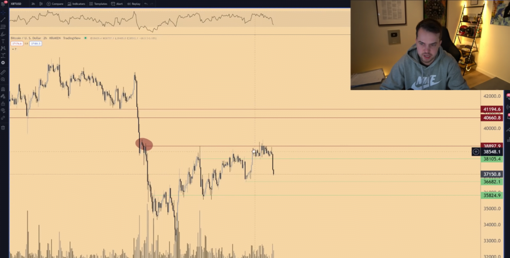 Bununla birlikte, BTC 37 bin dolar civarında tutunamazsa, analist olası %8’lik bir düşüş öngörüyor: