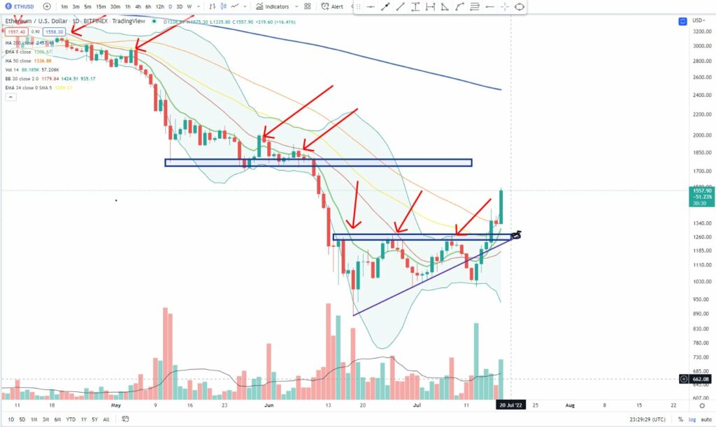 Cheds, Ethereum (ETH) için ileride ne olduğunu ele alarak devam ediyor. Analist, Bitcoin’in düşmesine bakılmaksızın, Ethereum’un 1.700 doları seviyesini geri almak için yeterince güçlü olduğunu belirtiyor: