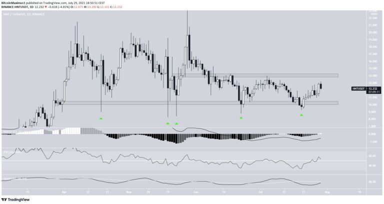 Bu arada, HNT maksimum arzı 223 milyona ulaşmak için, iki yıllık yarılanma programına 1 Ağustos’ta başladı. Nisan ayının başından bu yana HNT, 10.20 dolarlık yatay destek alanının (yeşil simgeler) beş kat üzerinde işlem görüyor. Teknik göstergeler HNT için nötr, yükseliş eğilimi gösteriyor. Token’in dilencide 14.05 dolarda bulunuyor.