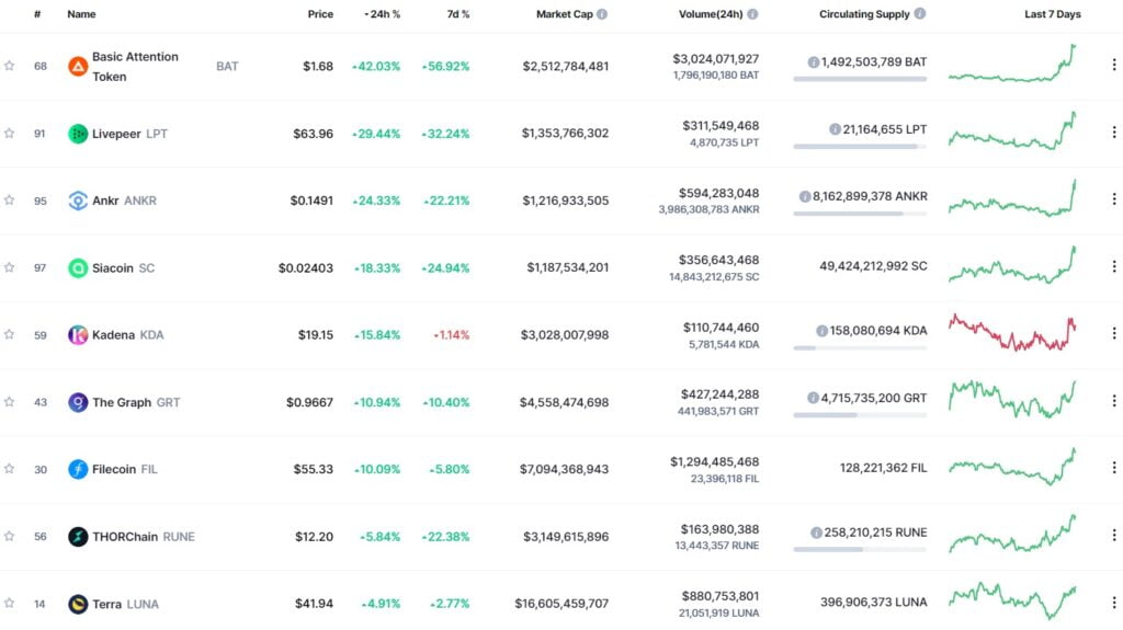 İkinci olarak en çok değer kazanan coin, yüzde 29 ile Livepeer (LPT) oldu. 2017’de piyasaya sürülen Livepeer, tamamen merkezi olmayan ilk canlı video yayın ağı protokolüdür ve Web 3.0’ı gerçekleştirme yolunda adım atanlardan biridir. Livepeer, yakın zamanda Confluence protokol güncellemesi gerçekleştirdi. Üçüncü sırada ise yüzde 24.33’lük yükseliş ile Ankr (ANKR) yer alıyor. Ankr, kolay ve uygun maliyetli Blockchain node barındırma çözümleri sağlamak için paylaşılan kaynakları kullanan bir çözüm olarak ortaya çıkar. Ankr, yakın zamanda çoklu-ürün lansmanını gerçekleştirdi ve yeni, çeşitli hizmetler sunmaya başladı.