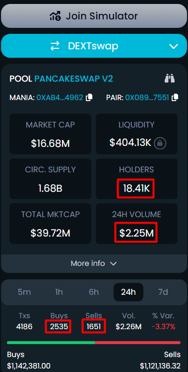 Holder sayısı ilk 24 saatte 18,41 binde sabit kaldı ve işlem hacmi 2,25 milyon dolara ulaştı. ScapesMania anında DEXTools’un Hot Pairs listesine hakim oldu. Daha fazla açıklamaya gerek yok.