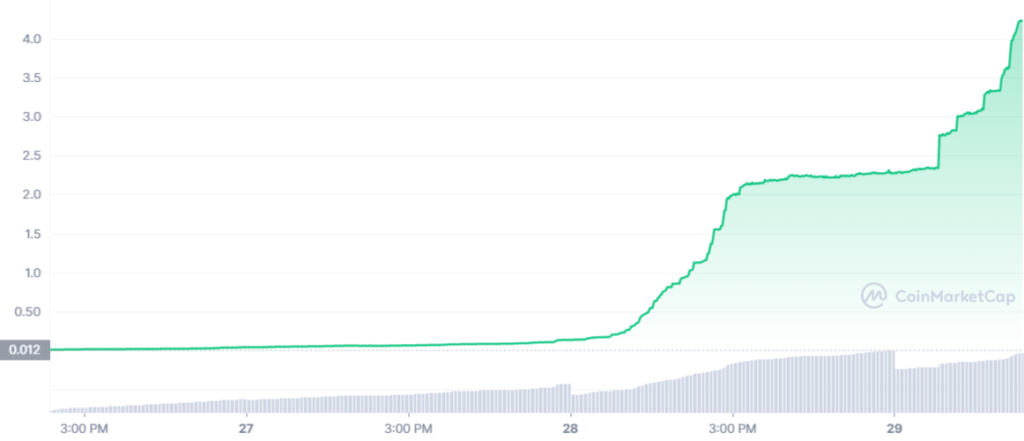 “Squid Game”, acımasız hayatta kalma oyunlarında para ödülü için yarışan insanlar hakkında Güney Koreli bir distopya dizisidir. Hit olan seri, küresel bir kültürel fenomen haline geldi. SQUID Salı günü 1,2 sent civarında işlem görüyordu, ancak şimdi 4.33 dolarda – neredeyse yüzde 25,000’lik bir artış sergiledi. SQUID’in ön satışları 20 Ekim’de başladı ve tanıtım belgesine göre “1 saniyede tükendi.”