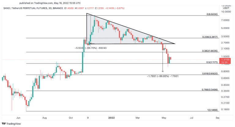 1 dolar ile tehdit edilen bir diğer metaverse coin: The Sandbox. SAND, 12 Mayıs’ta 0,96 dolara düştükten sonra yaklaşık %60 oranında yükselmiş olsa da, üç günlük grafiğinde gelişen azalan bir üçgenin sunduğu düşüş hedefini henüz tutturamadı. Daha fazla satış baskısı, analiste göre 1,12 dolar destek seviyesinden 0,70 dolara düşüşü tetikleyebilir.