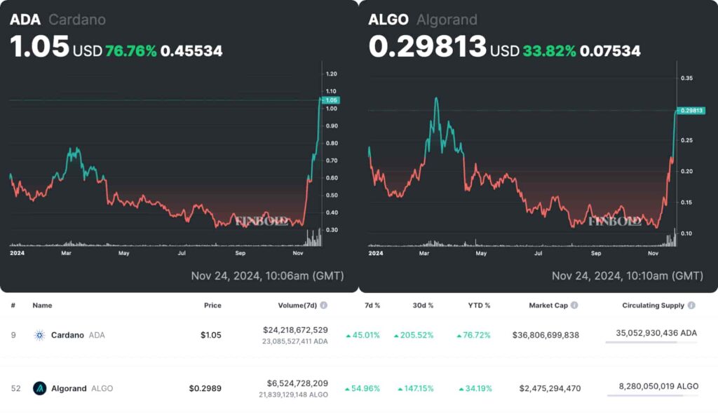 Cardano (ADA) ve Algorand (ALGO) gibi “OG” coin’leri, altcoin sezonu başlarken güçlü bir ivme görüyor. Bu bağlamda, uzmanlar bir yapay zeka (AI) modeline ADA’nın mı yoksa ALGO’nun mu 2025 için daha iyi bir satın alma olacağını sordu. İşte detaylar…