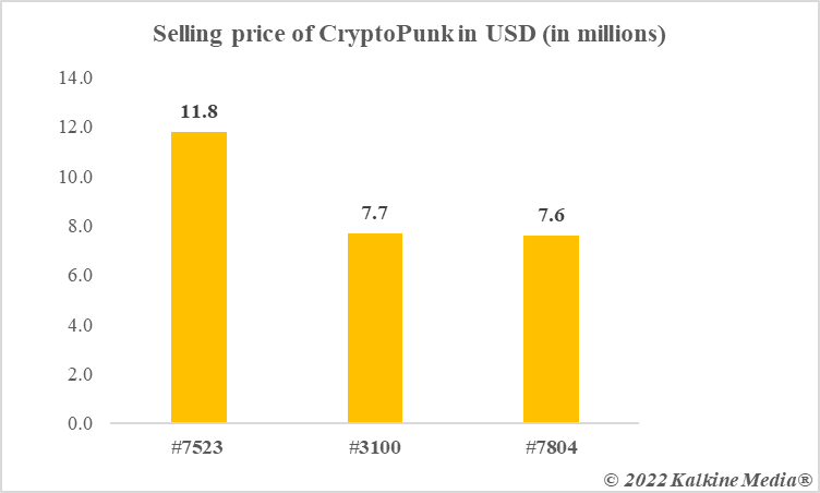Raporlara göre, CryptoPunk #7523, geçen yıl Haziran ayında 11,8 milyon dolara satıldı. Bu satıştan önce CryptoPunk #3100 ve CryptoPunk #7804 de milyonlarca dolara satılmıştı.
