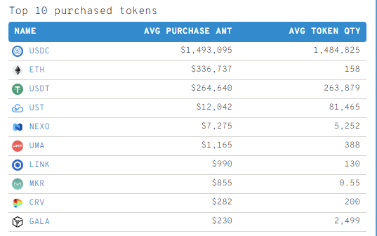 İlginç bir şekilde, şu anda oldukça zor durumdaki algoritmik stablecoin TerraUSD (UST) de listede yer aldı. UST, geçtiğimiz hafta ABD doları sabitinden ayrışmasıyla 1 doların oldukça altındaki seviyelere geriledi. Bu düşüş, Terra ekosisteminin tokenı LUNA’yı da olumsuz etkiledi ve token neredeyse yüzde 100 düşüş yaşadı.  Ethereum, balinaların 158 ETH tokenı biriktirmek için ortalama 336.737 dolar harcamasıyla genel olarak ikinci sırada yer alıyor.