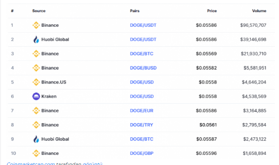Coinbase, popüler kripto para birimini çevreleyen heyecana rağmen, bireysel yatırımcıların DOGE ticareti yapmasına izin vermekten şimdiye kadar kaçındı. Yine de borsa, son zamanlarda SushiSwap (SUSHI) ve Polygon (MATIC) projelerini listeledi. Bu nedenle yatırımcılar, Coinbase’den bir DOGE listelemesi haber bekliyor. CoinMarketCap verilerine göre, Binance’deki DOGE/USDT ticaret çifti Dogecoin’in işlem hacminin yüzde 8,17’sini oluşturuyor. DOGE ayrıca Hobi, Kraken, Bittrex ve diğer bazı borsalarda alım satım için de kullanılabilir.