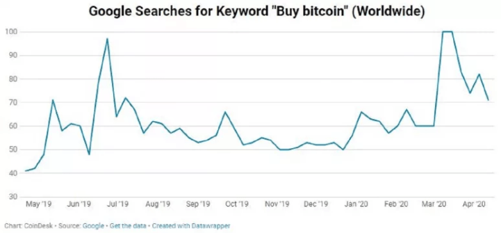 Beklenen olayla ilgili sorgular, 11 Nisan tarihinde zirveye çıktı. 11 yıllık Bitcoin tarihinde ise en yüksek seviye halini aldı. Sorgu hafiften düşüşe geçse de uzun süre yüksek seviyelerde kaldı. Örneğin 21 Mart haftasındaki aramaların iki katına çıktı.
