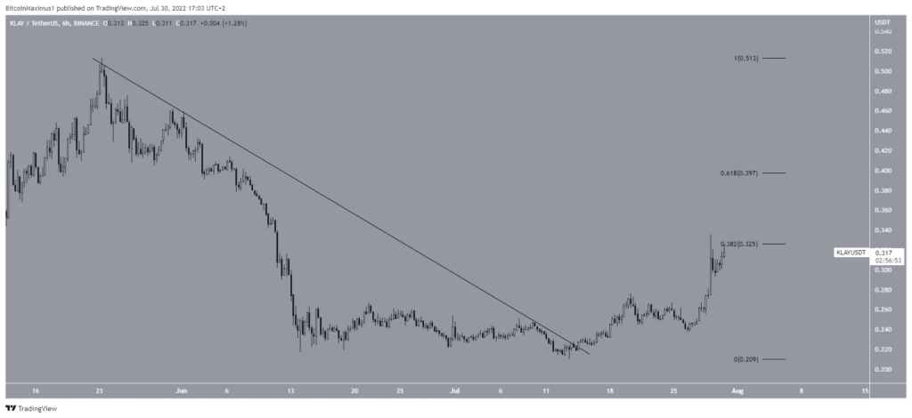 Teknik kısımda, KLAY fiyatı 14 Temmuz’da alçalan direnç çizgisini kırmayı başardı. Şu anda 0,325 dolar direnç seviyesini kırmaya çalışıyor. Bu seviye kırılırsa boğaların sıradaki hedefi 0,397 dolar olacak.