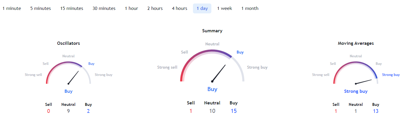 Yukarıdaki düzenleyici endişelere rağmen, Lido ve diğer likit staking platformları, yatırımcılar kripto varlıklarından pasif gelir elde etmenin yollarını aradıkça popülerlik kazanmaya devam ediyor. Teknik analiz kapsamında LDO, sırasıyla 17 ve 14’te ‘güçlü bir alım’ öneren bir günlük göstergelerin ve hareketli ortalamaların bir özeti ile yükseliş duygularıyla destekleniyor. Osilatörler 3’te “satın al” işareti veriyor.