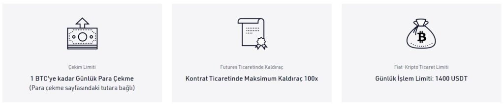 KYC, günlük para çekme miktarını etkiler. KYC sürecinden geçmemiş bir hesap 24 saatte 1 Bitcoin (BTC) çekebilir – bu, birçok trader için yeterli bir miktar. Örneğin Binance’te 24 saatlik süreç içerisinde çekilebilecek maksimum miktar 0.06 BTC’dir. KYC doğrulaması gerçekleştiğinde vadeli işlemler ticaretinde ve fiat-kripto ticaret limitinde de avantaj görebilirsiniz.