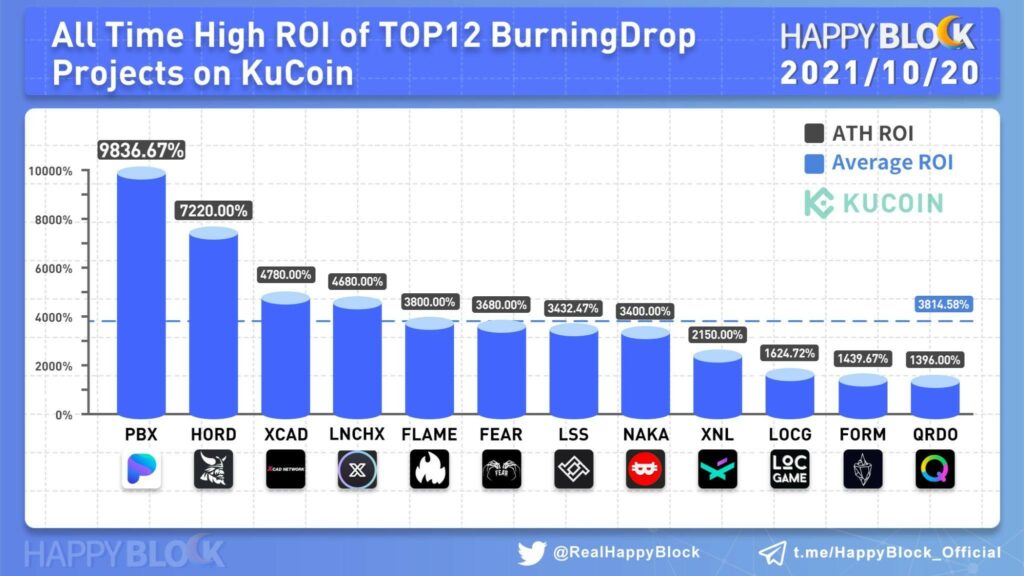 Öte yandan BurningDrop, adil bir token dağıtım platformu olarak karşımıza çıkıyor. Şimdiye kadar HORD, TCP, LOCG, LNCHX, XCAD vb. dahil olmak üzere çok çeşitli Blockchain girişimlerinin token dağıtımını desteklemiştir. Kullanıcılar, belirlenen miktarda kripto varlığını kilitleyerek proje tokenına erişebilir. Ek olarak, kullanıcılar daha fazla token dağıtımına erişim için bilgi işlem güçlerini artırmak için tokenlar atayabilir. Verilere göre şimdiye kadar, BurningDrop aracılığıyla listelenen projelerin ortalama yatırım getirisi yüzde 3.814’ü aşıyor. En çok getiriyi sağlayan ise PBX olmuş gibi görünüyor.