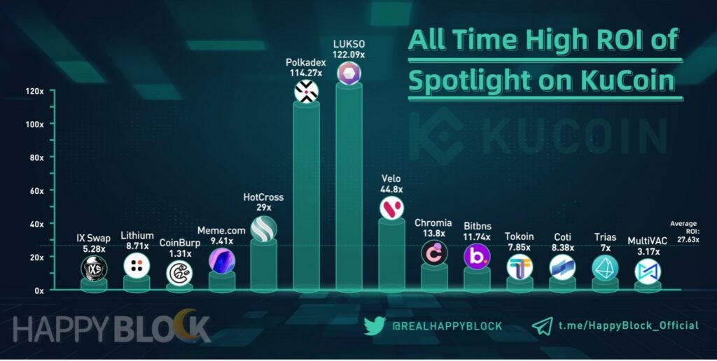 Şimdiye kadar KuCoin, 17 Spotlight projesi başlattı. Örneğin, Spotlight’taki projelerden biri olan LUKSO piyasalara sürüldüğünden bu yana 122 kat, PDEX ise 114 katlık bir artış yaşadı. Velo 44.8x yaparken HotCross 29x yaptı.