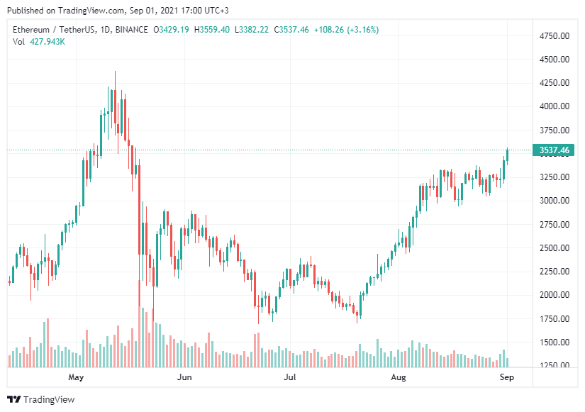 Ethereum son zamanlarda etkileyici bir büyüme yolunda. Gün içinde ulaştığı 3,557.88 dolar ile son üç ayın en yüksek seviyesini kaydetti. Talebe paralel olarak, Ethereum ağındaki kullanım son haftalarda büyük ölçüde arttı ve gas ücretlerinin bir hafta içinde %200 artmasına neden oldu. Şimdi, daha fazla kullanıcı önde gelen akıllı sözleşmeler platformunu benimserken, ETH değerine ilişkin tahminler de buna bağlı olarak artıyor.