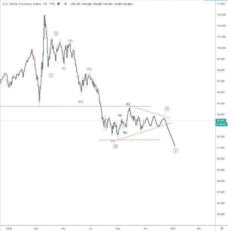 Bu arada Smart Contracter ABD Doları Endeksi’nde düşüş gösteriyor. Usta analist, DXY’nin düşüş trendinde kaldığını ve bunun Bitcoin için iyi bir haber olduğunu söylüyor. Smart Contracter konuya yönelik açıklamalarına şunları ekliyor: