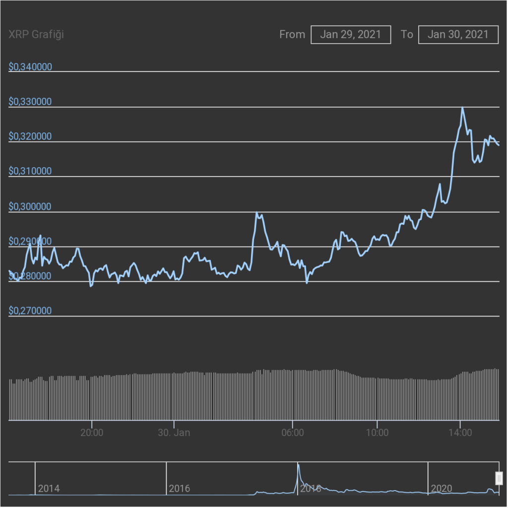 CoinGecko verilerine göre bugün erken saatlerde Ripple (XRP), kısa bir süreliğine 0.32 dolara kadar çıkmayı başardı. Bunun öncesinde 0.28 dolar seviyelerinde seyrediyordu. İşte, U.today’de yer alan habere göre XRP’yi 0.28 dolar seviyesinden yukarı iten nedenler: