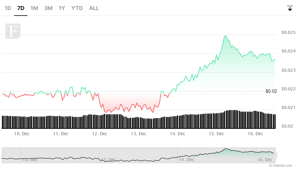 Verilerin gösterdiği üzere, XDC’nin mevcut fiyatı, önceki 24 saate göre %1,93’lük bir düşüş gördü. Ancak yedi gün öncesine göre %12,08’lik bir artış kaydetti. Bu doğrultuda altcoin, 0,0242 dolar seviyesinde işlem görüyor.