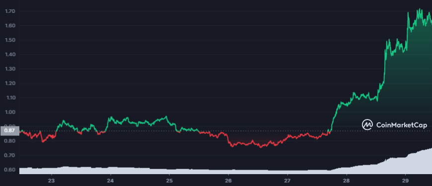 Ethereum (ETH/USD) layer 2 ölçeklendirme çözümü Optimism (OP) iki günlük büyük bir ralli gördü. Verilere göre, OP 27 Temmuz’da 0.77 dolardan işlem görüyordu. Ertesi gün, 28 Temmuz’da altı ayın en yüksek seviyesi olan 1.77 dolara yükseldi. Yazım sırasında, token son 24 saatte yüzde 50’lik bir artış sergiliyor. Mevcut fiyatı 1.61 dolarda duruyor. Tokenın büyük rallisi, CoinGlass’tan alınan verilere göre, son gün 8 milyon doları açığa satma (short position) olmak üzere 11 milyon dolarlık tasfiyeye yol açtı.