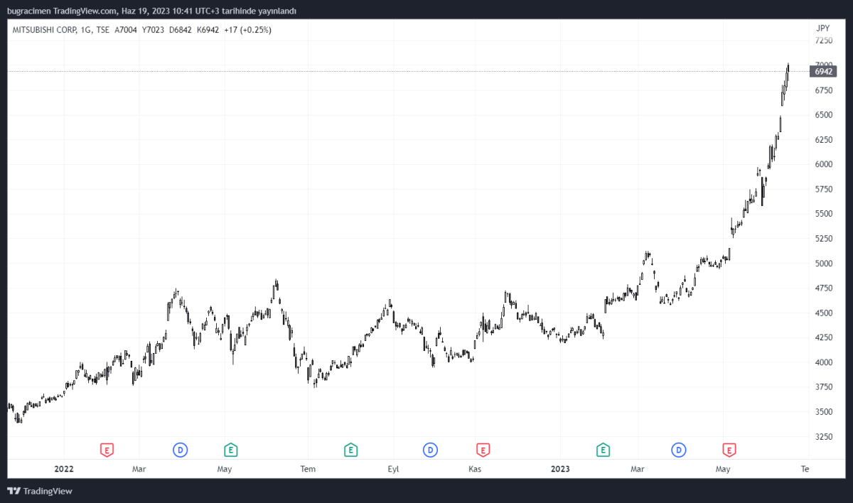 Japonya’da işlem gören Mitsubishi hisseleri yıl başından bu yana Japon yeni bazında %65 değerlendi. Amerikan dolarının Yen karşısında son 6 ayda %11 yükseldiğini göz önünde tuttuğumuzda hissedeki yükselişin yatırımcılara önemli bir reel getiri bırakığını söyleyebiliriz.